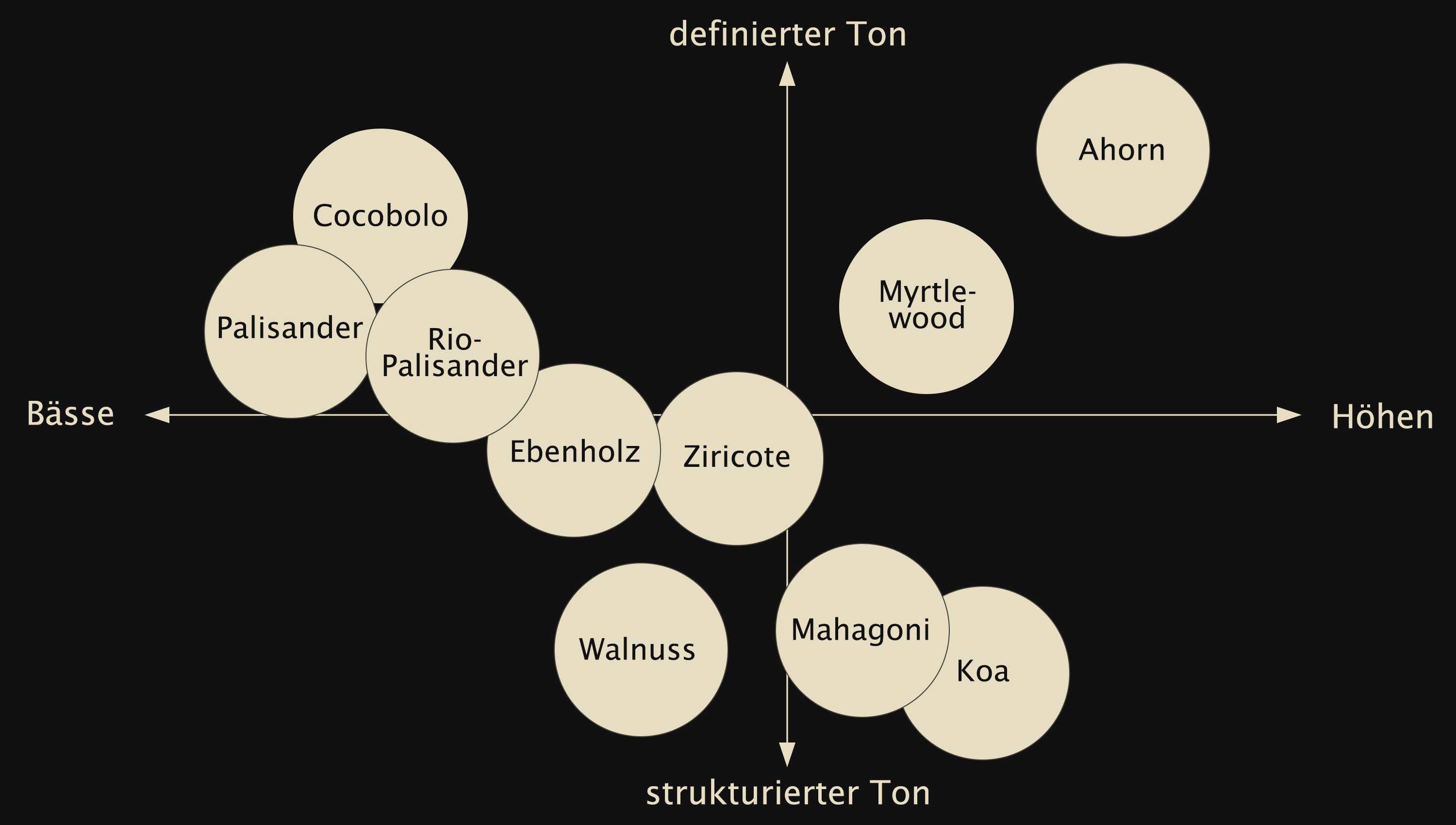 Wie klingen denn jetzt die Hölzer, wenn sie zu Böden und Zargen verarbeitet werden? Hier eine Übersicht: